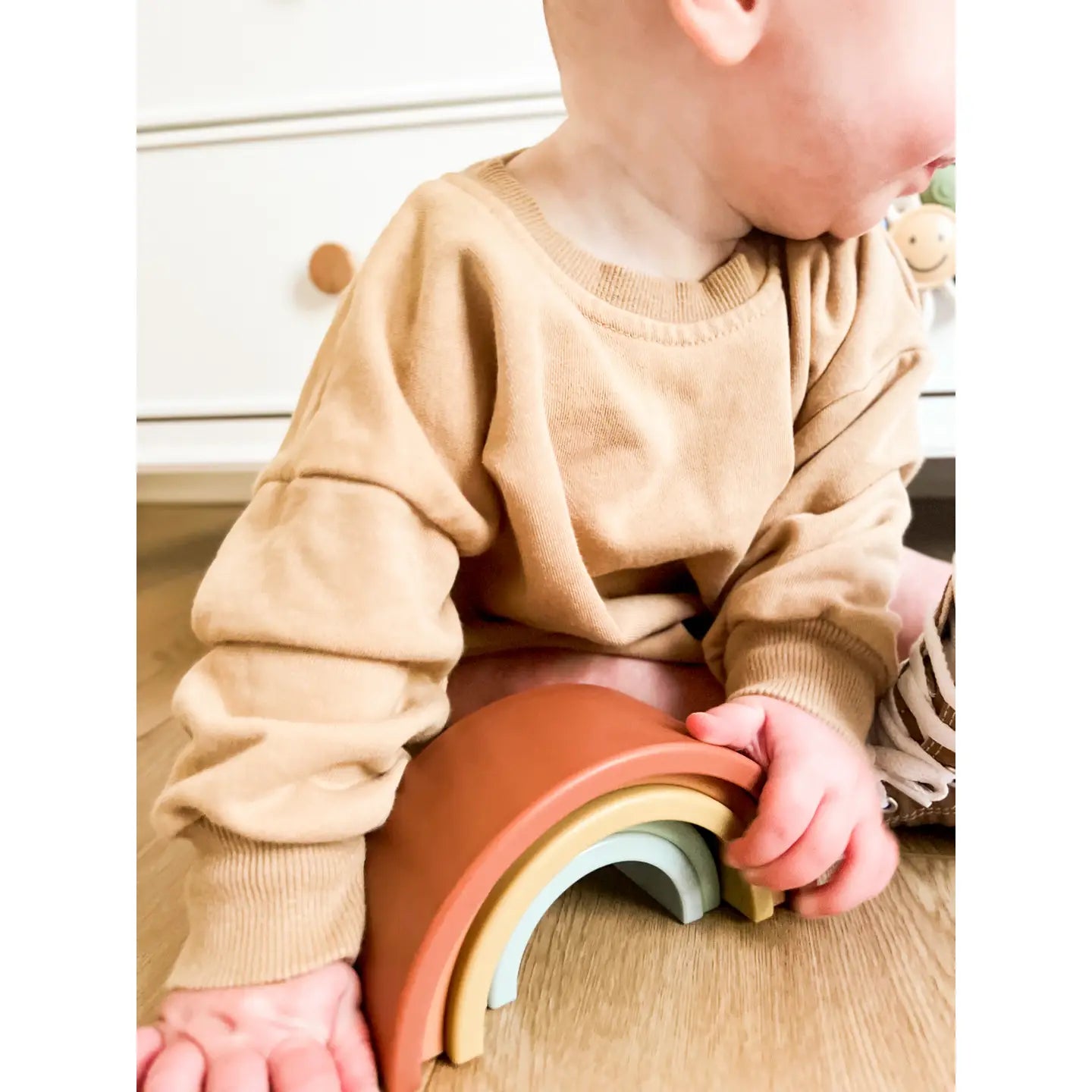 Regular price $13.99The Sky’s the Limit! Unlock a rainbow of creativity with the Ritzy Rainbow™ stacking toy. Featuring five flexible arches in assorted colors and sizes, this toy helps baby develop hand-eye coordination, cognitive reasoning, and fine motor skills as they stack, nest, sort, and play.