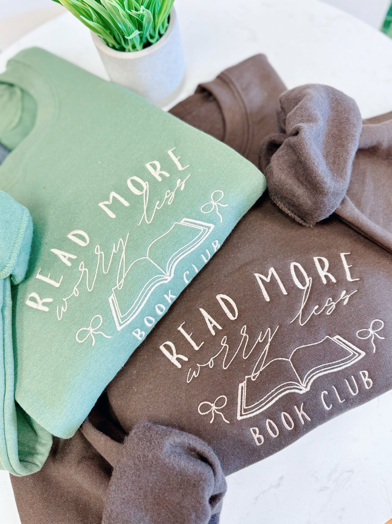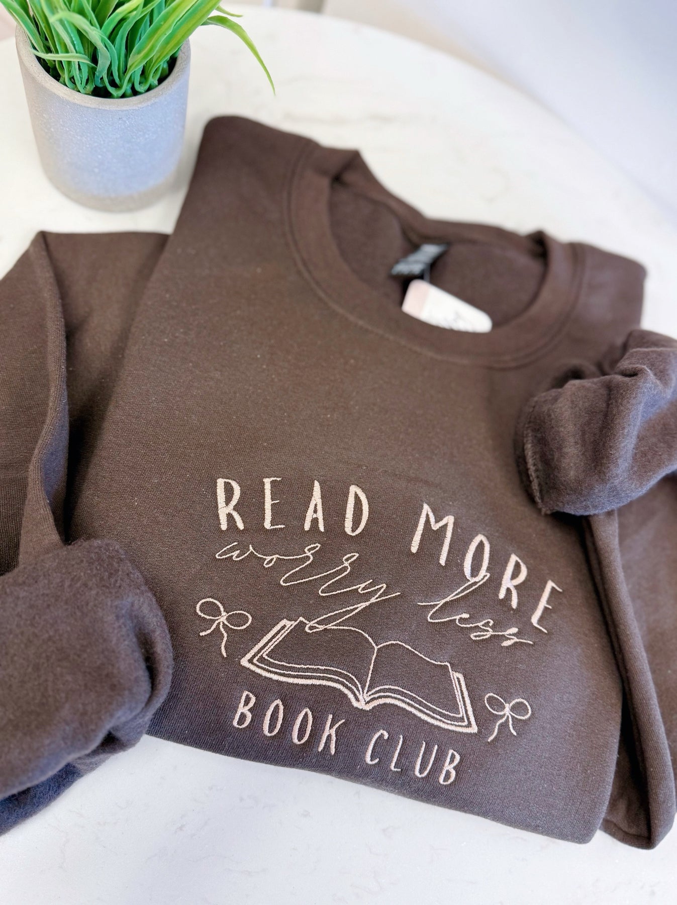 read more, worry less embroidered crewneck